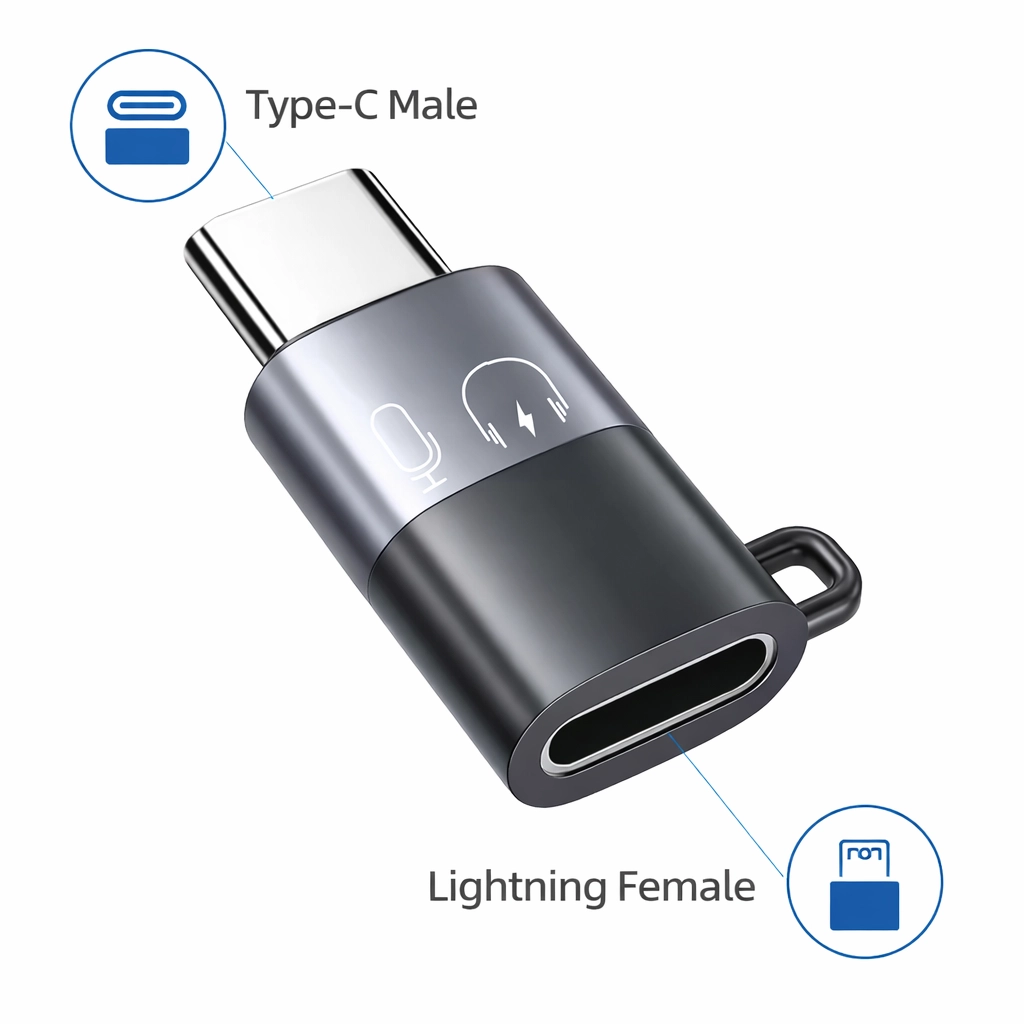 Adaptador USB-C a Lightning Hembra Compacto Gris