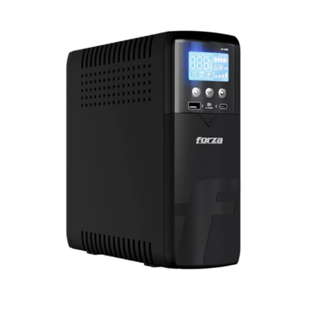 UPS Forza de 1000VA con pantalla LCD y múltiples tomas que brinda respaldo confiable y protección para tus equipos electrónicos, además de carga USB integrada. Mantén tus dispositivos seguros y operativos, ¡cómpralo ahora!